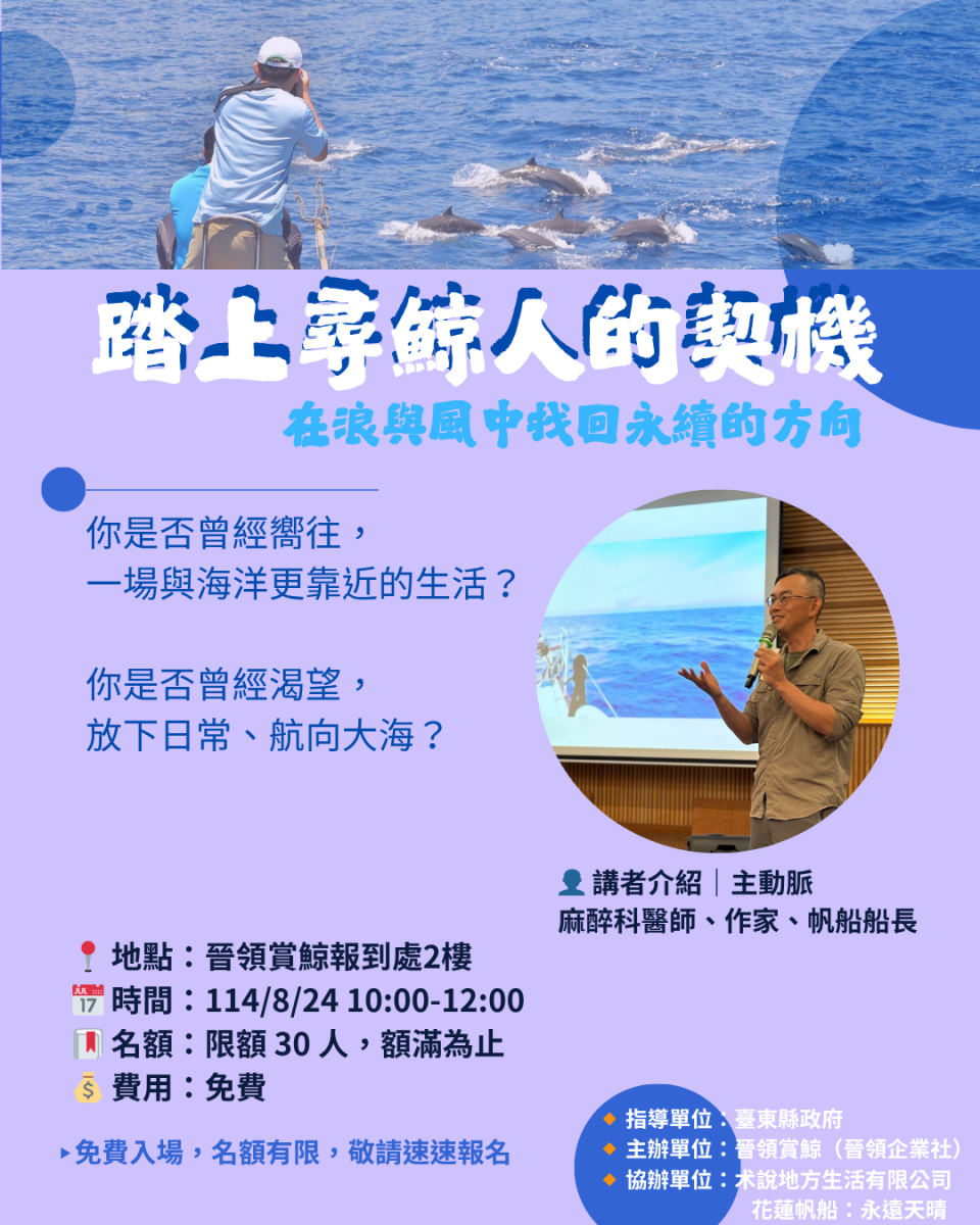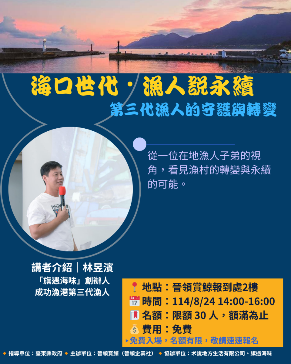 無論您關注的是海洋文化、永續發展,還是想聽聽真實而動人的海口故事,都別錯過這兩場深具啟發的分享。